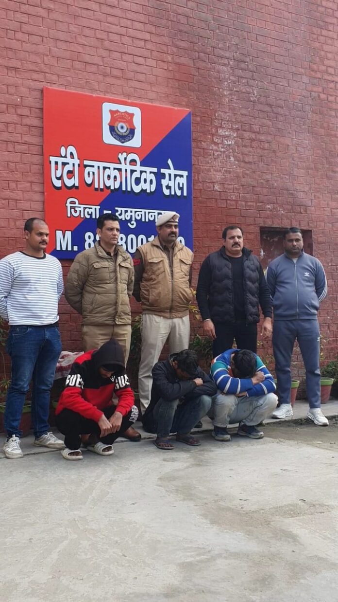 यमुनानगर में यमुनानगर एंटी नार्कोटिक सेल की टीम के द्वारा 2 युवक गिरफ्तार किये गये। जो कि स्मैक की स्मगलिंग कर रहे थे। बीते दिनों सूचना के आधार पर एंटी नार्कोटिक सेल की टीम ने हथिनीकुंड बैराज पर निगरानी रखी। और 2 युवक मोटरसाइकिल पर सवार होकर स्मैक की सप्लाई करने जा रहे थे और तभी एंटी नार्कोटिक सेल यमुनानगर की टीम ने इन्हें धर-दबोचा।