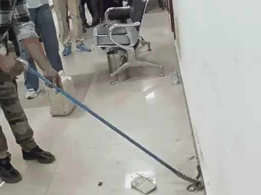 2. स्नेक एक्सपर्ट ने थोड़ी देर उसे हवा में लटकाकर रखा ताकि औजार की पकड़ पता चल सके