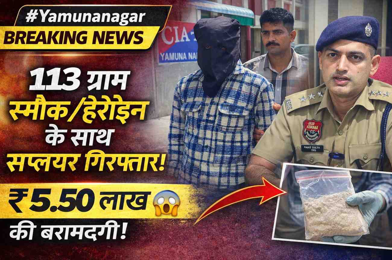 यमुनानगर पुलिस ने नशा तस्करों के खिलाफ बड़ी कार्रवाई करते हुए 113 ग्राम स्मैक/हेरोइन के साथ एक आरोपी को गिरफ्तार किया है। बरामद नशीले पदार्थ की कीमत अंतरराष्ट्रीय बाजार में करीब 5.50 लाख रुपये बताई जा रही है।