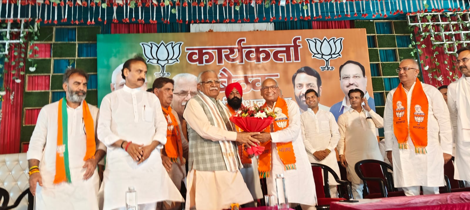 इंद्री 2 मई (NIRMAL SANDHU) दीवान पैलेस में भाजपा कार्यकर्ताओ की एक मीटिंग का आयोजन किया गया जिसमे बतौर मुख्यअतिति के तौर पर पूर्व मुख्यमत्री मनोहर लाल ने शिरकत कर कार्यकर्ताओ से रूबरू हुए और उनसे लोक सभा के चुनाव की फीड बेक भी ली। पूर्व मुख्यमंत्री मनोहर लाल का इंद्री में पहुंचने पर इंद्री के विधायक रामकुमार कश्यप ने पार्टी कार्यकर्ताओ की तरफ से पुष्प गुच देकर उनका जोरदार स्वागत किया। इंद्री विधानसभा में भाजपा के ऊर्जावान कार्यकर्ताओ के साथ बैठक में शामिल होकर लोकसभा चुनाव और संगठनात्मक विषयों को लेकर संवाद किया। इस मीटिंग में सांसद संजय भाटिया व विधायक हरविंदर कल्याण सहित जिला अध्यक्ष योगेंदर राणा सहित सभी भाजपा कार्यकर्त्ता ने अपने विचार रखे । पूर्व मुख्य मनोहर लाल खटटर ने सभी कार्यकर्ताओ का धन्यवाद करते हुए कहा की देश में तीसरी बार फिर नरेंद्र मोदी देश के प्रधान मंत्री बनने जा रहे है उन्होंने ने कहा की जनता ने कॉंग्रेस पार्टी को पूरी तरह से नकार दिया है