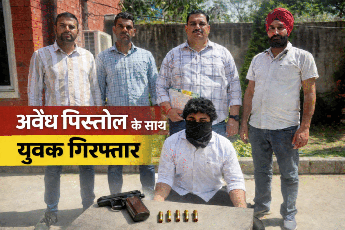यमुनानगर अपराध शाखा-2 की बड़ी कार्रवाई: अवैध पिस्तौल व 5 जिंदा कारतूस के साथ युवक गिरफ्तार