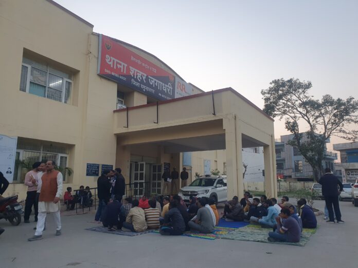 बीते दिनों जगाधरी के गुलाबनगर में जगाधरी का ही रहने वाला एक व्यक्ति अपनी गाड़ी से रस्ते से जा रहा था गाड़ी तेज रफ्तार में थी। तो रस्ते में खड़े व्यक्ति ने उसको बोला कि बच्चे बुजुर्ग भी चलते है रस्ते में थोड़ा धीरे चलो। गाड़ी चालक को इस बात से गुस्सा आ गया और उसको धमकी देकर गया कि यही रुको दस मिनट तुम्हे बताता हु। थोड़ी देर बाद व्यक्ति गाड़ियां भरकर गुंडे बदमाश लेकर आया। और मोहल्ले में मार पीट शुरू कर दी। लाठियों डंडों से बुजुर्ग, महिलाओं सब पर प्रहार किया और फरार हो गए। जिसके बाद मोहल्ले के निवासियों ने थाना शहर जगाधरी में जाकर दोषियों के खिलाफ FIR दर्ज करवाई। जिसमे 2 व्यक्तियों का उन्होंने नाम लिखवाया और लगभग 10 अन्य लोग भी थे। जिसके बाद उनपर कोई कार्यवाही नहीं हुई। तो 14 फरवरी को मोहल्ले के लोग थाना शहर जगाधरी इकट्ठे होकर पहुंचे थाने के सामने दरिया बिछाकर बैठ गए और धरना प्रदर्शन करने लगे।