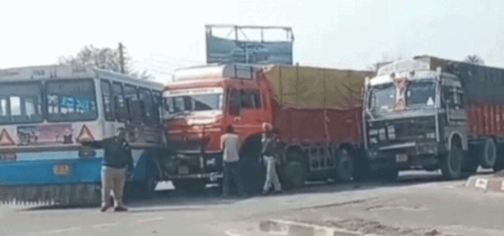 आज यमुनानगर (हरियाणा) के एक राष्ट्रीय हाईवे पर एक गंभीर सड़क हादसा हुआ, जब एक तेज गति से आ रहा ट्रक रोडवेज बस से टकरा गया। इस टक्कर में बस चालक, कंडक्टर और कई यात्रियों को चोटें आईं हैं, और दोनों वाहनों को भी भारी नुकसान हुआ है।