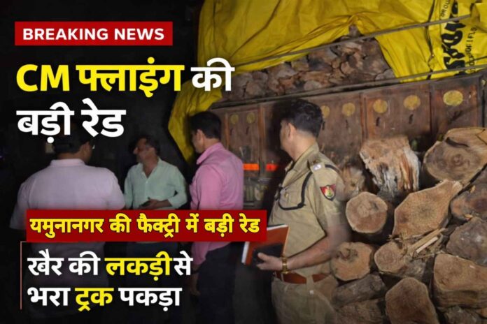 यमुनानगर में अवैध गतिविधियों के खिलाफ चल रही कार्रवाई के तहत CM फ्लाइंग टीम ने एक बड़ी रेड को अंजाम दिया है। इस कार्रवाई में एक फैक्ट्री से खैर की लकड़ी से भरा ट्रक बरामद किया गया है, जिससे इलाके में हड़कंप मच गया।