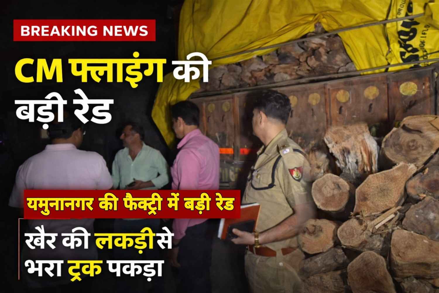 यमुनानगर की फैक्ट्री में CM फ्लाइंग की बड़ी रेड: खैर की लकड़ी से भरा ट्रक पकड़ा, छिलाई के बाद हो रही थी सप्लाई
