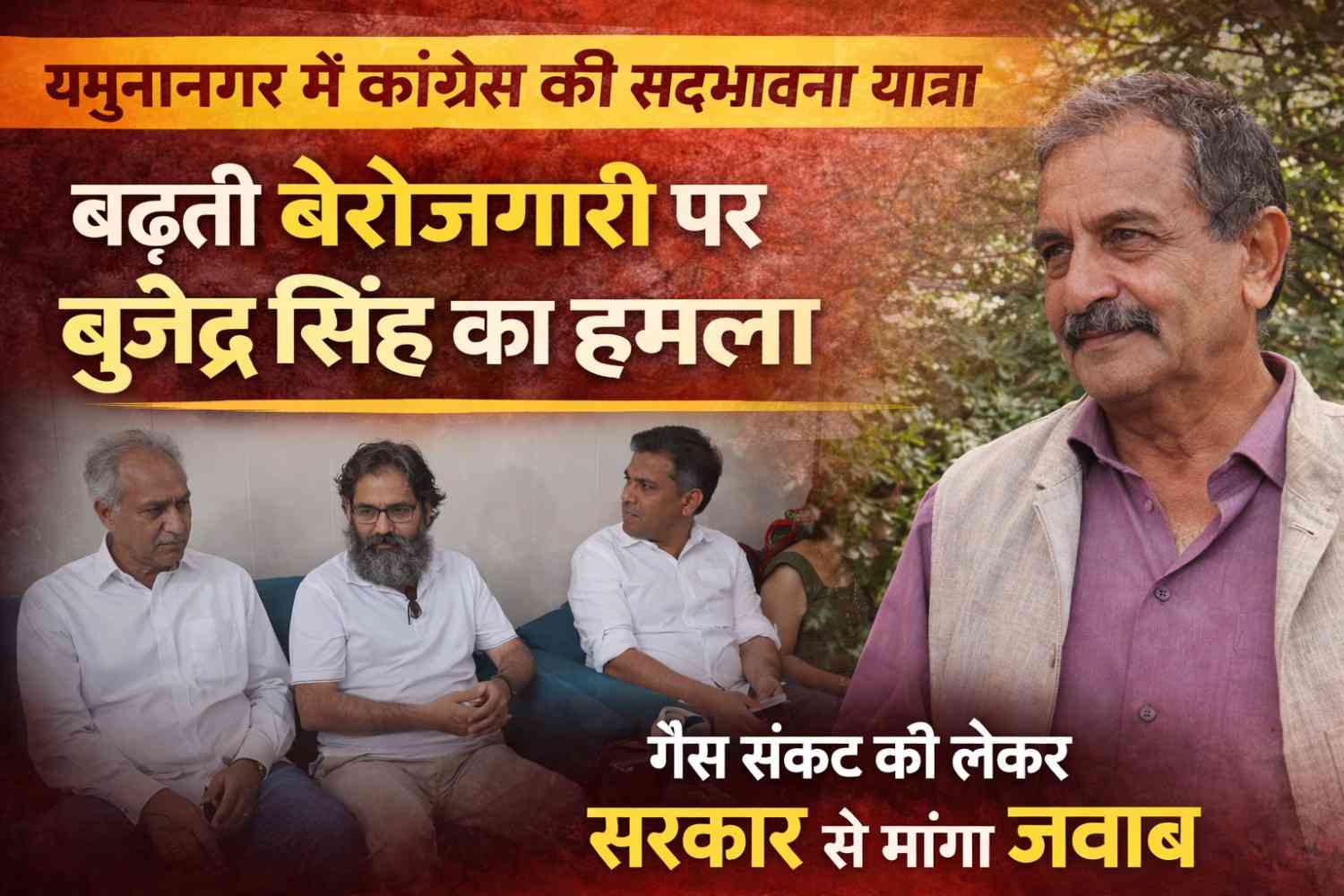यमुनानगर में कांग्रेस की सद्भावना यात्रा: पूर्व सांसद बृजेंद्र सिंह बोले – प्रदेश में बढ़ रही बेरोजगारी, गैस संकट पर सरकार से जवाब मांगा